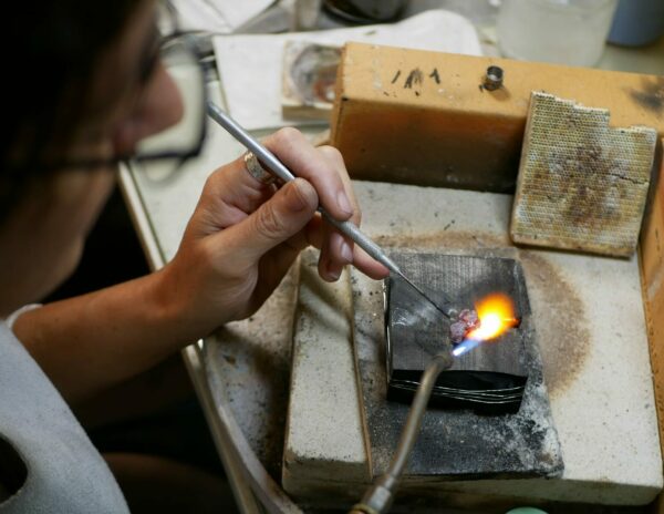 J’ai approfondi ma maîtrise technique par des formations ciblées — sertissage à la Haute École de Joaillerie, fonte à la cire perdue, réticulation, technique japonaise Mitsuro Hikime, granulation… — tout en préservant cette approche intuitive qui est le cœur de mon travail. Mon art évolue sans cesse, au rythme des techniques que j’explore, des rencontres que la Vie m’offre et de cette redécouverte permanente de soi, jour après jour.