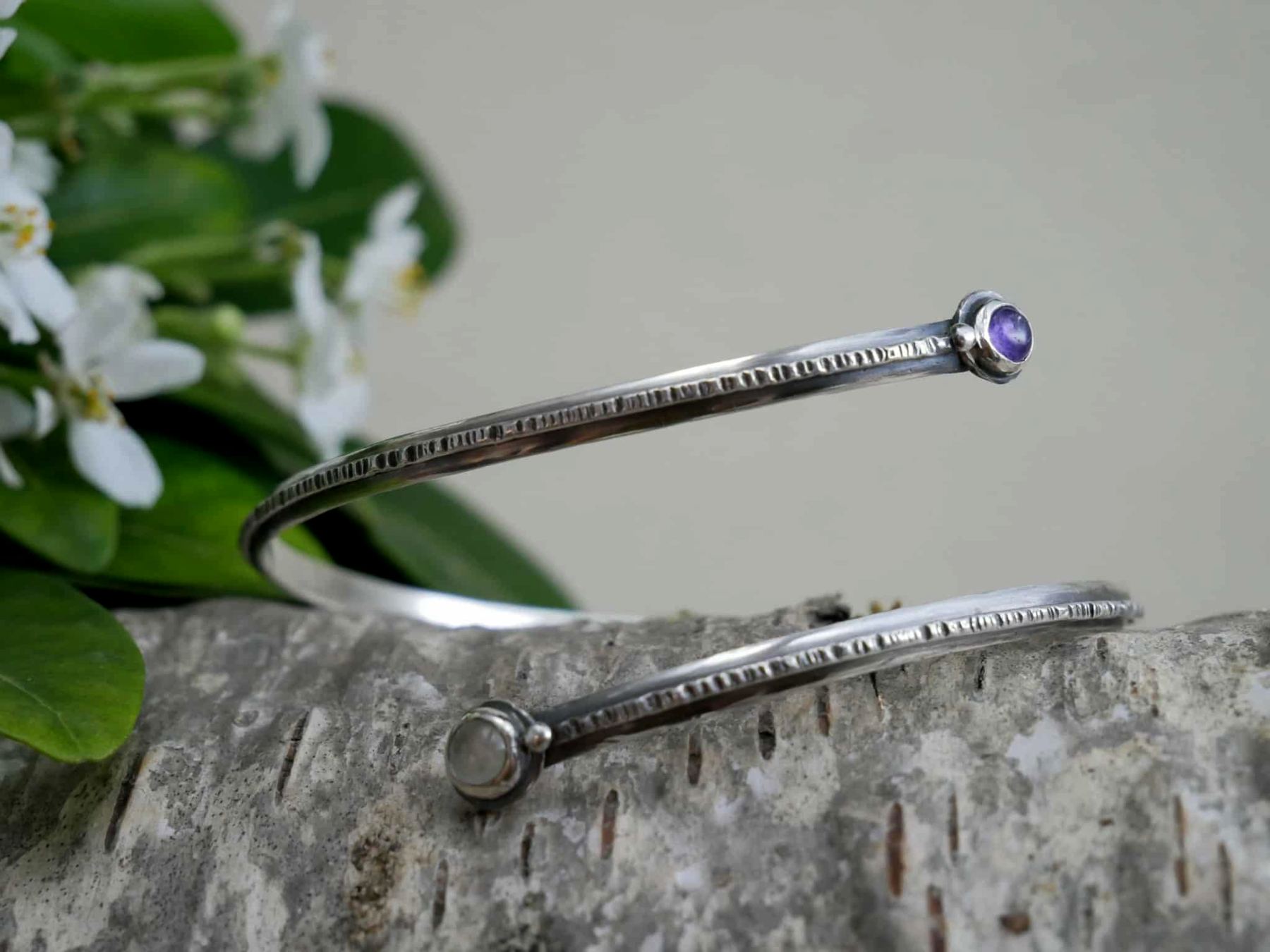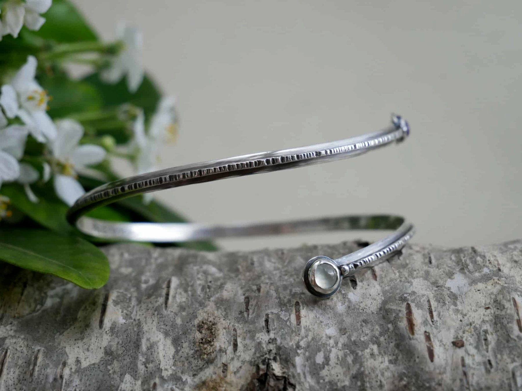 Bracelet de bras en argent, délicatement orné de pierres fines naturelles. Chaque pierre a été choisie pour son énergie et sa beauté unique, reflétant Lumière et honorant le lien au Vivant.