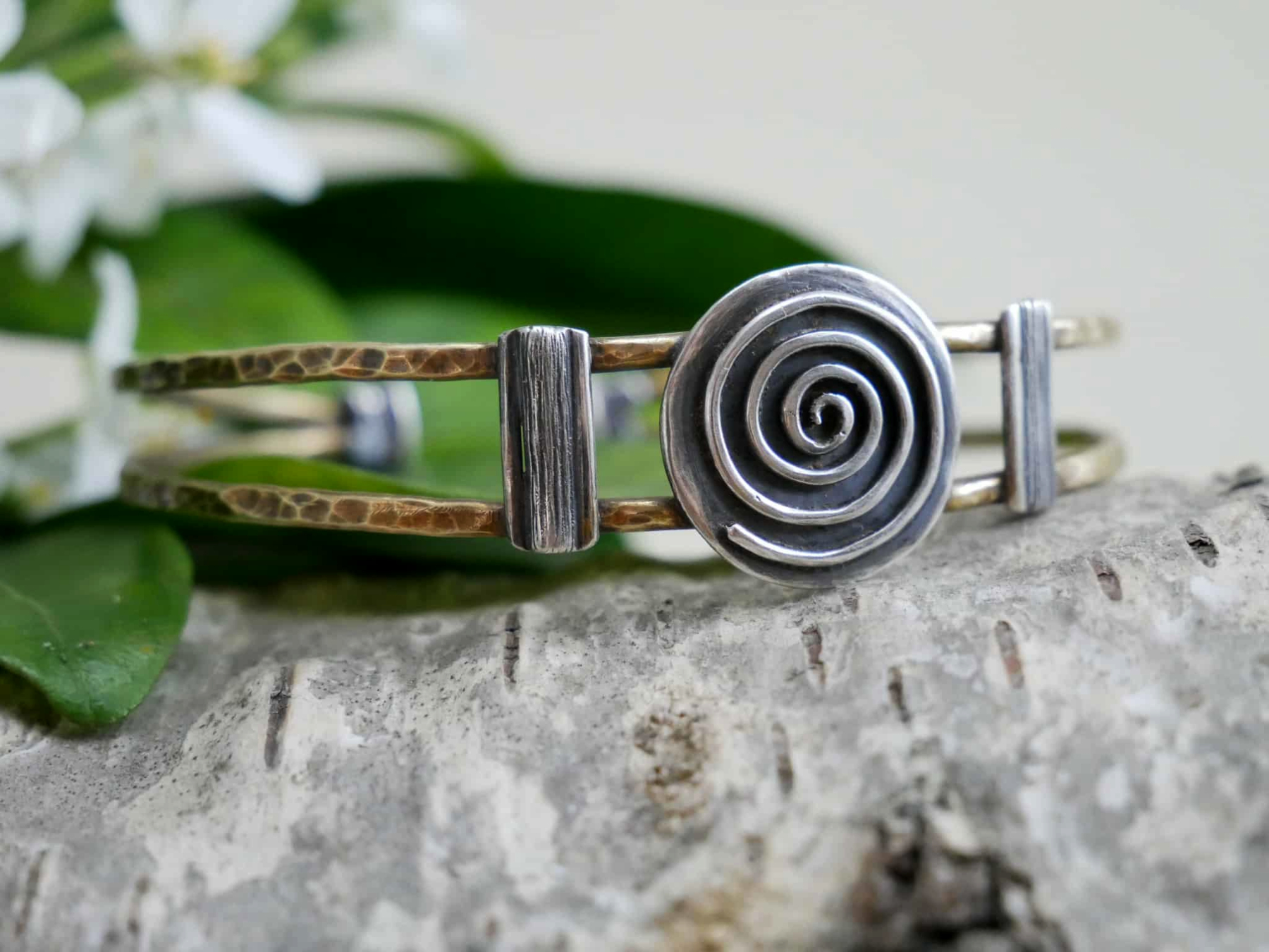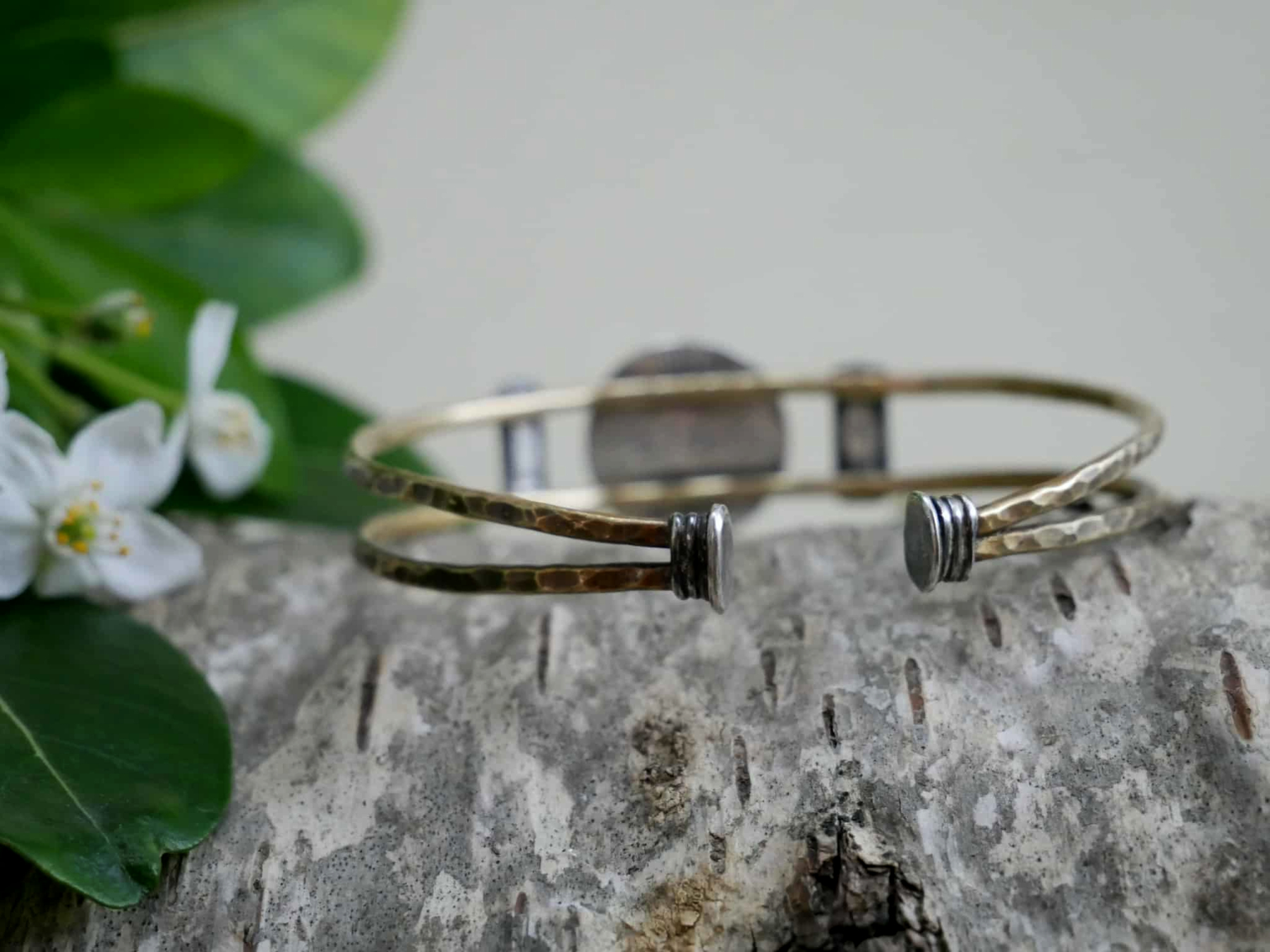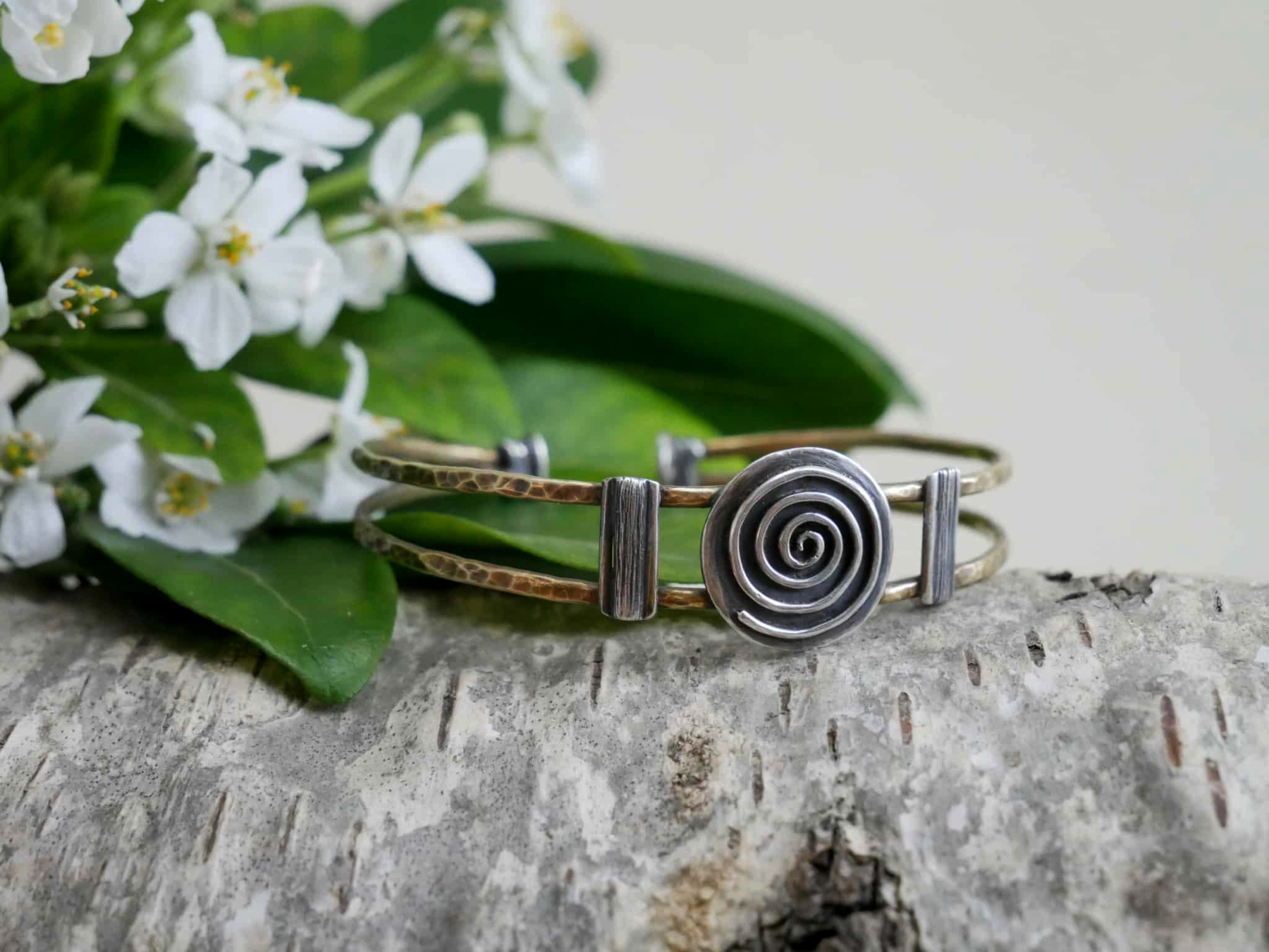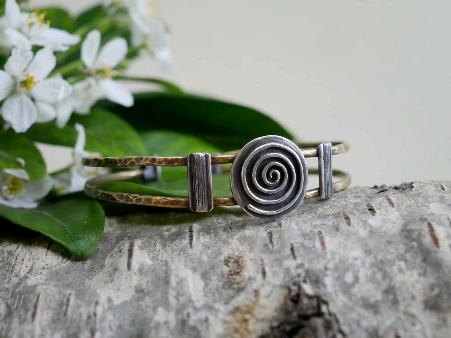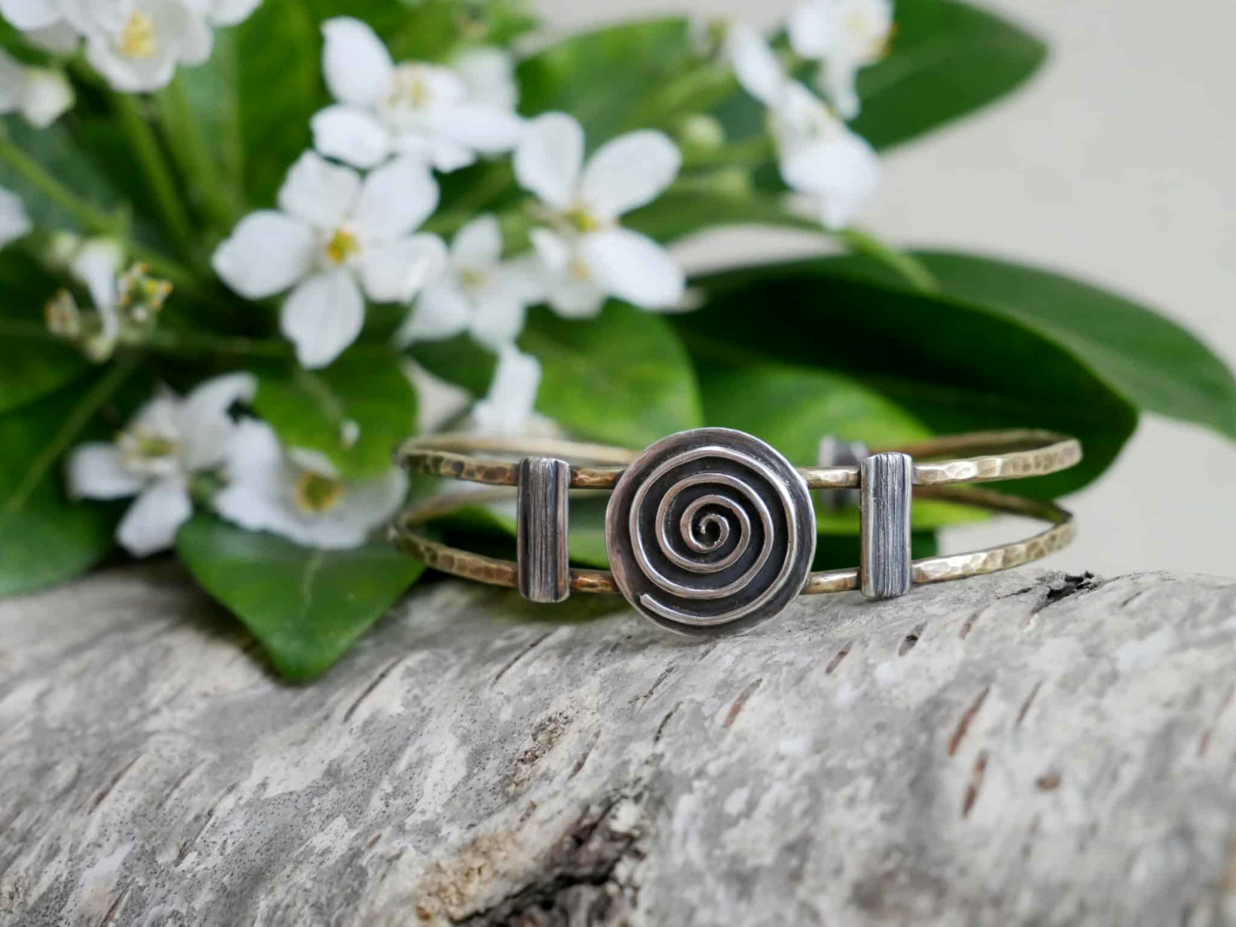 Ce bracelet jonc mixte en argent et laiton est une pièce unique, mariant élégance et symbolique. Sa spirale et l’inscription du mot Présence rappelle le flux permanent de la Vie et appelle à revenir à la Présence à chaque souffle, pensée, parole, geste…
