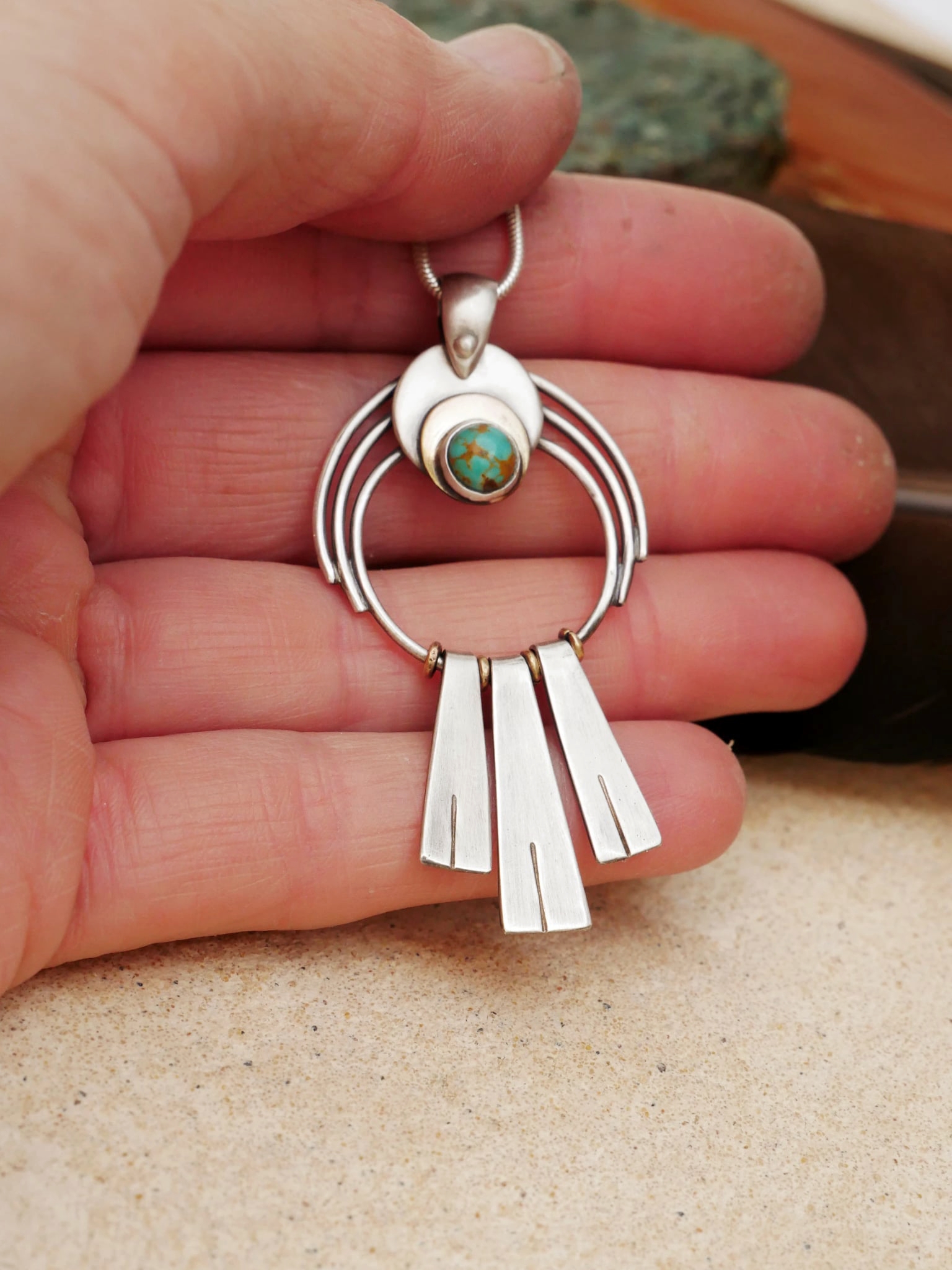 Argent 950, laiton et Turquoise