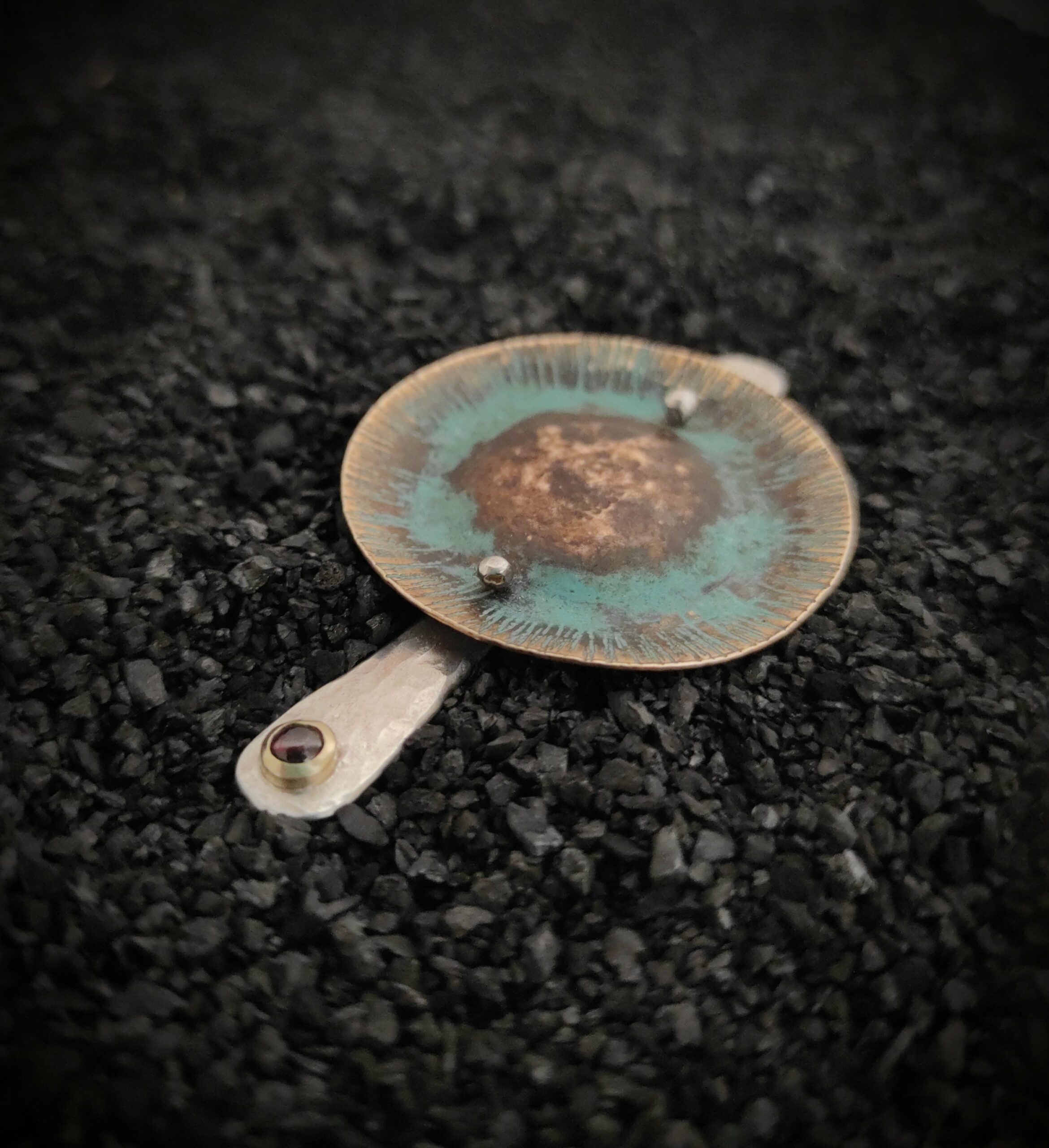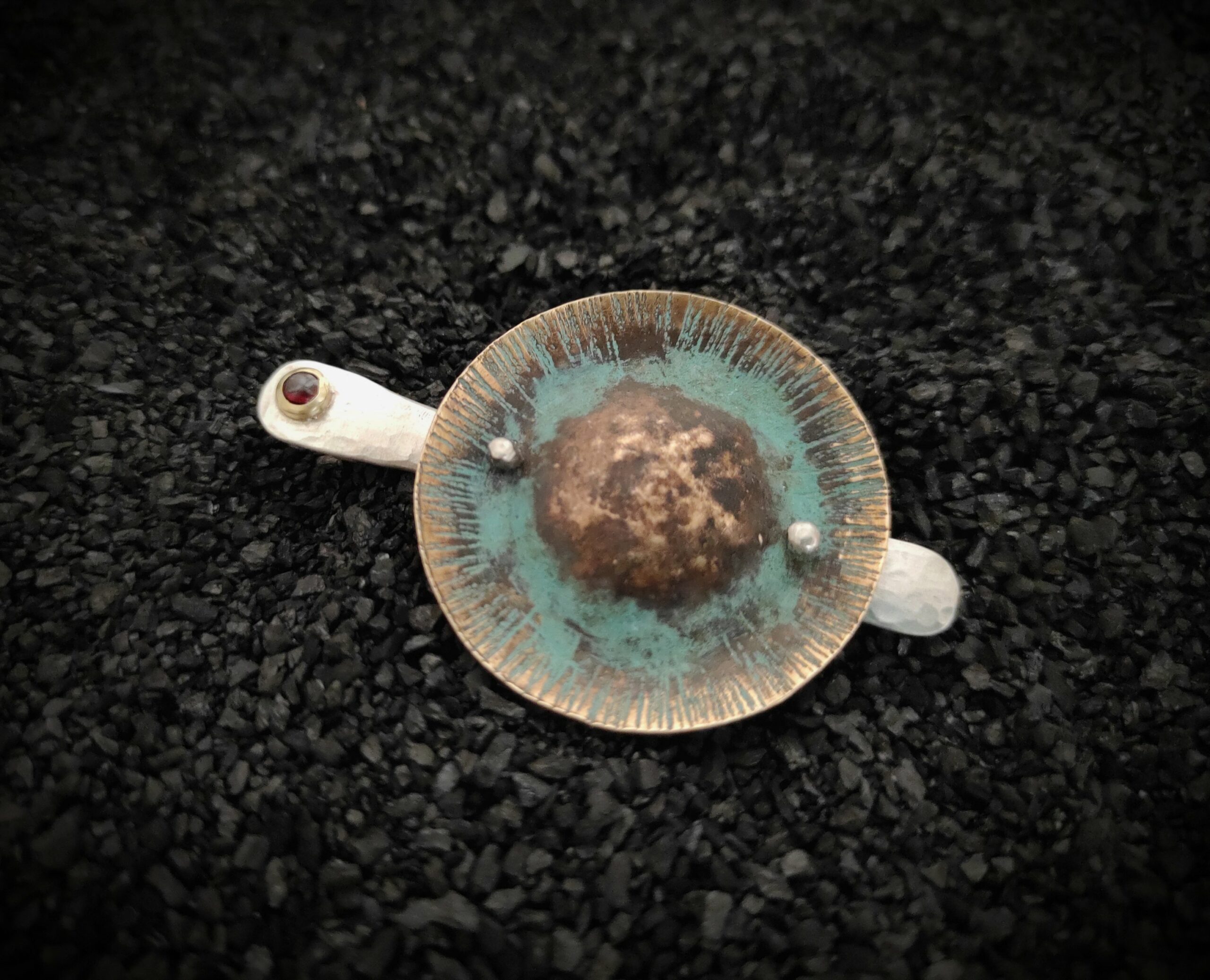 Argent, laiton et grenat