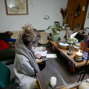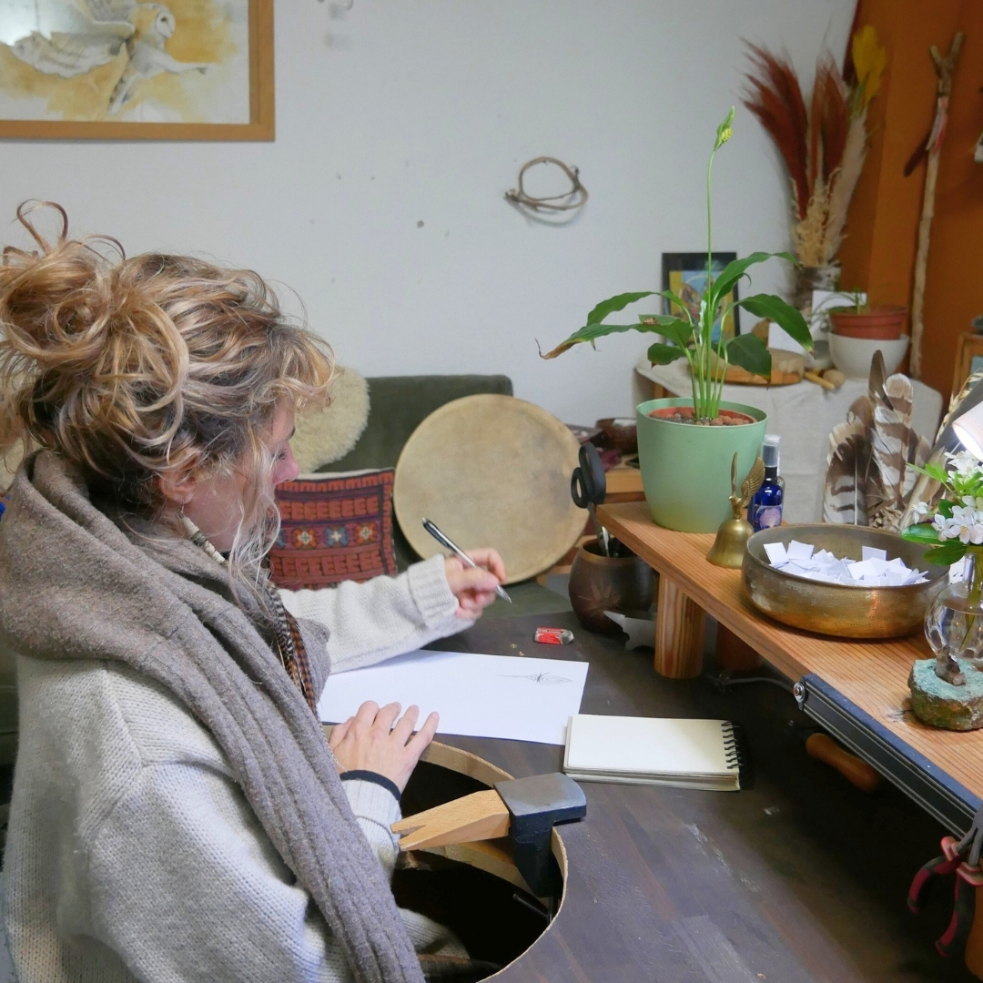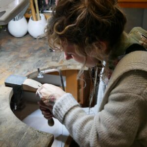 Depuis 2019, j’ai intégré les pierres fines et le travail des métaux dans mes créations, ce qui me permet de réaliser des bijoux vibratoires à travers les propriétés en lithothérapie des pierres, la géométrie sacrée, l’alchimie des